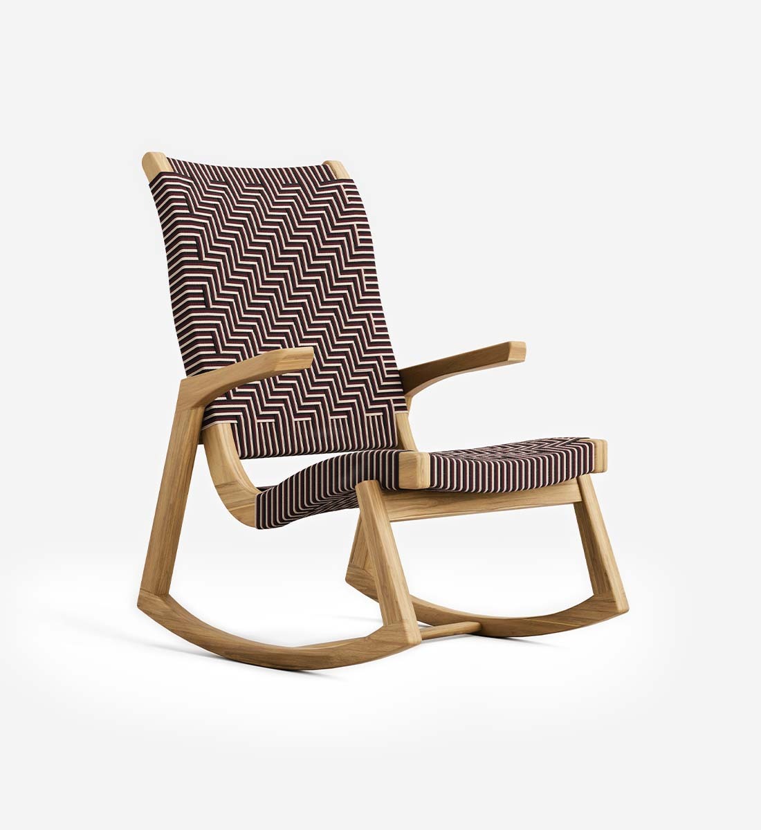 Delightful hues and gentle rocking vibes. The Izapa Rocking Chair is handcrafted from FSC®-Certified teak wood. An eco-friendly rocker for eco-conscious living spaces.