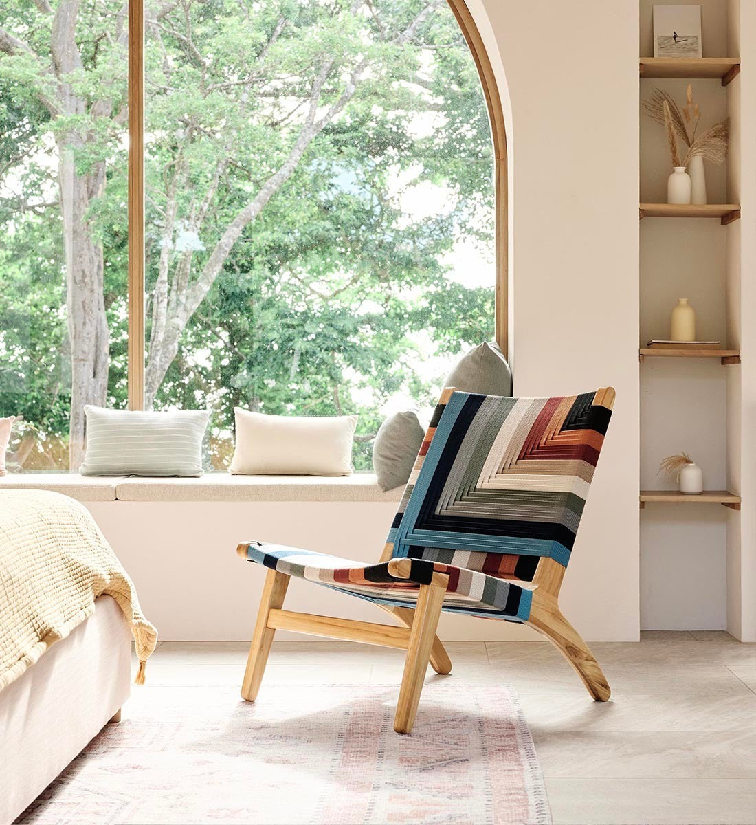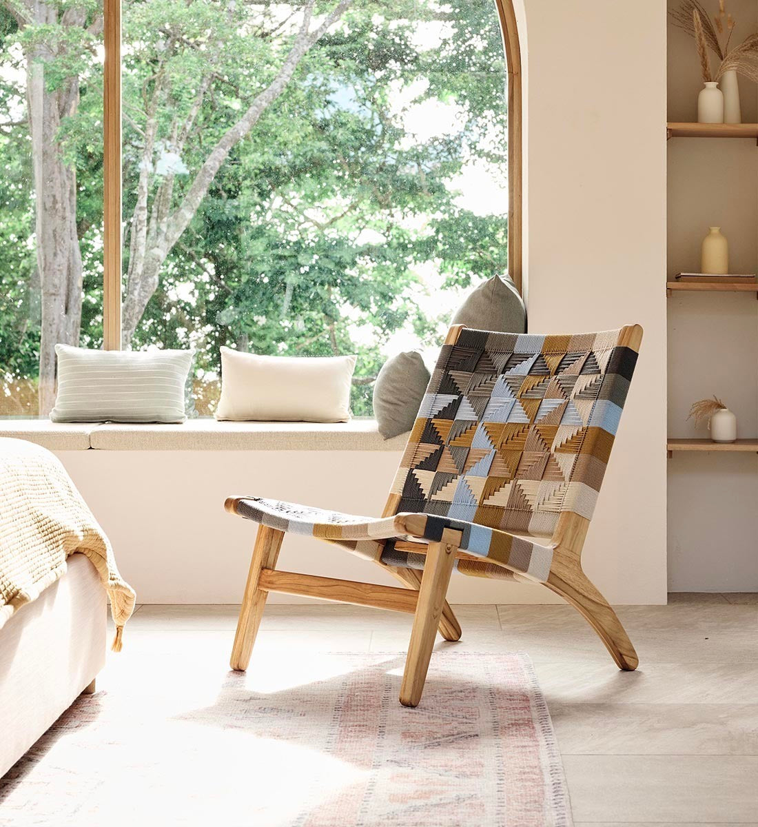 Small but striking, the Casares Lounge Chair is crafted from 100% FSC®-Certified teak wood with a colorful woven cord seat and backrest. An eco-friendly accent for compact spaces.