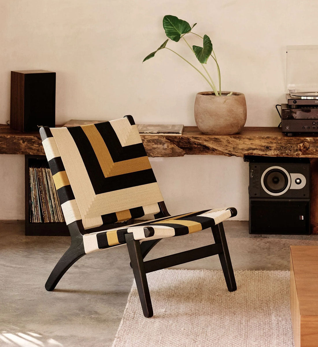 Rich woven textures and fine woodworking details. We designed the Casares to be everything we think is essential in a lounge and nothing more.