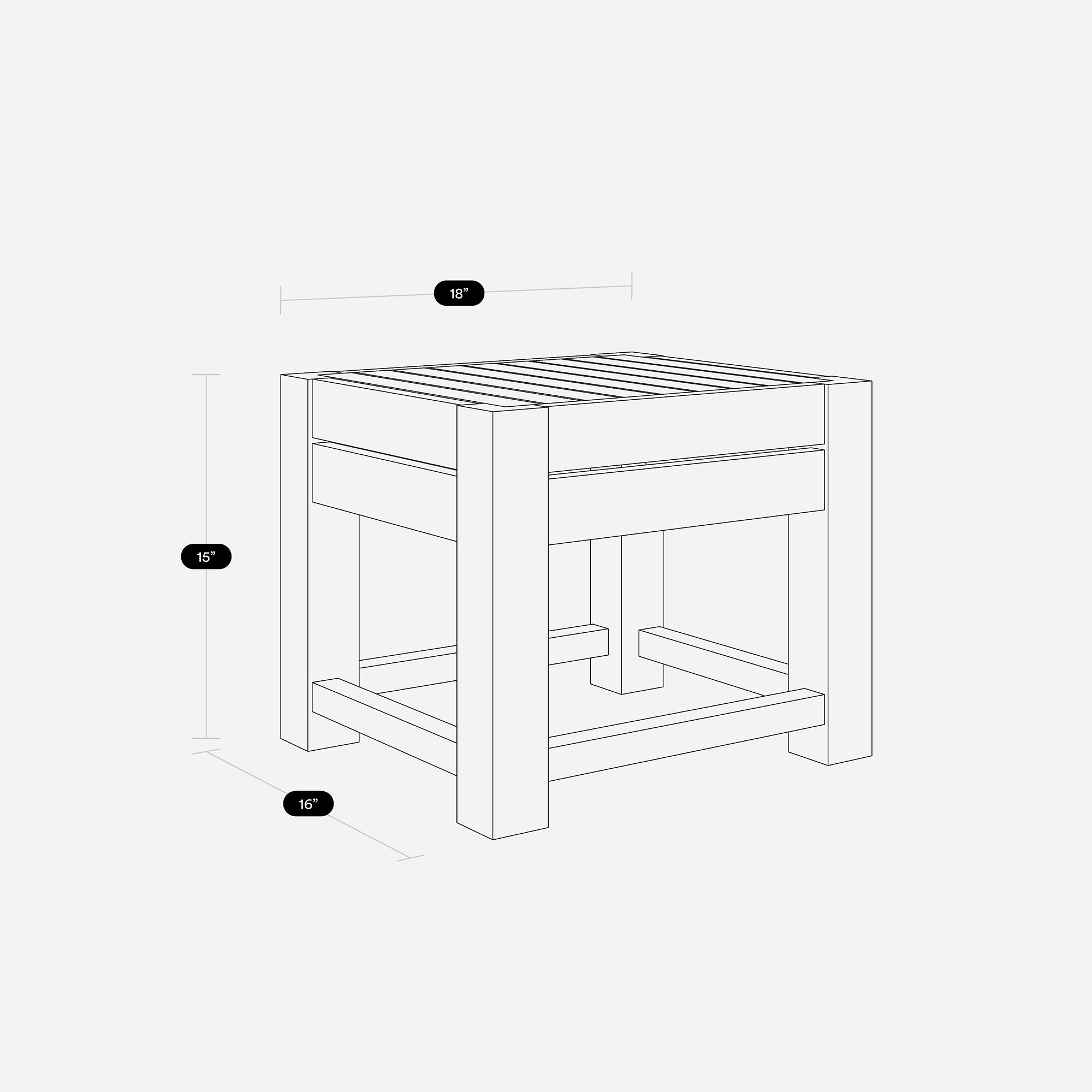 W: 18" D: 16" H: 15"