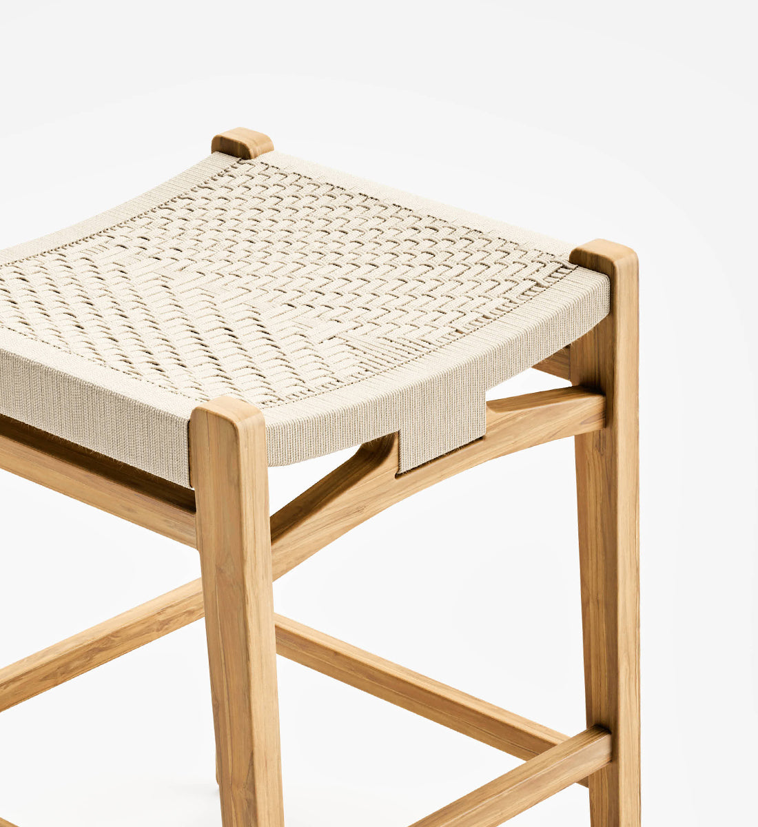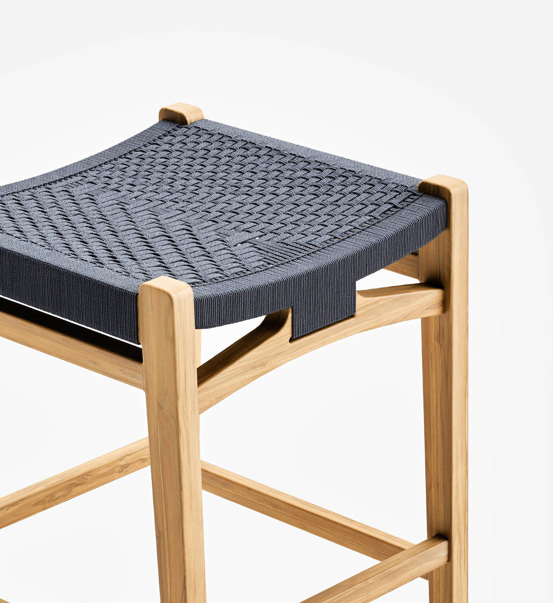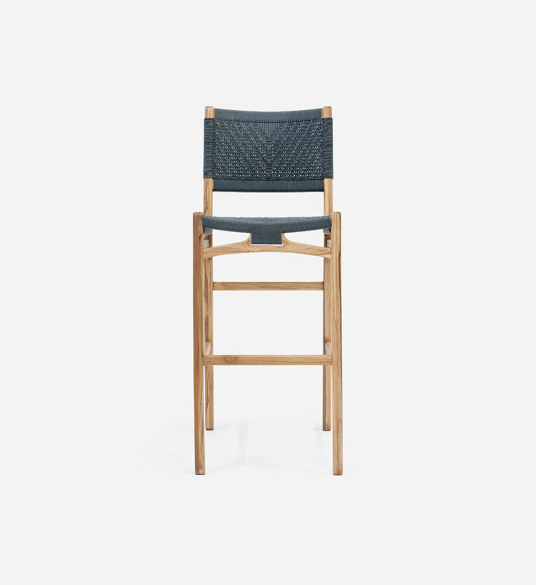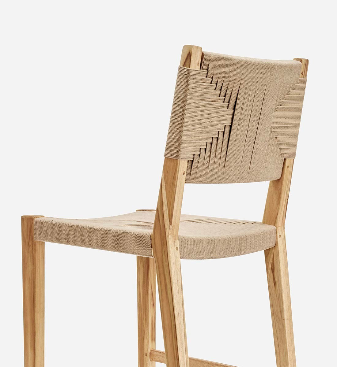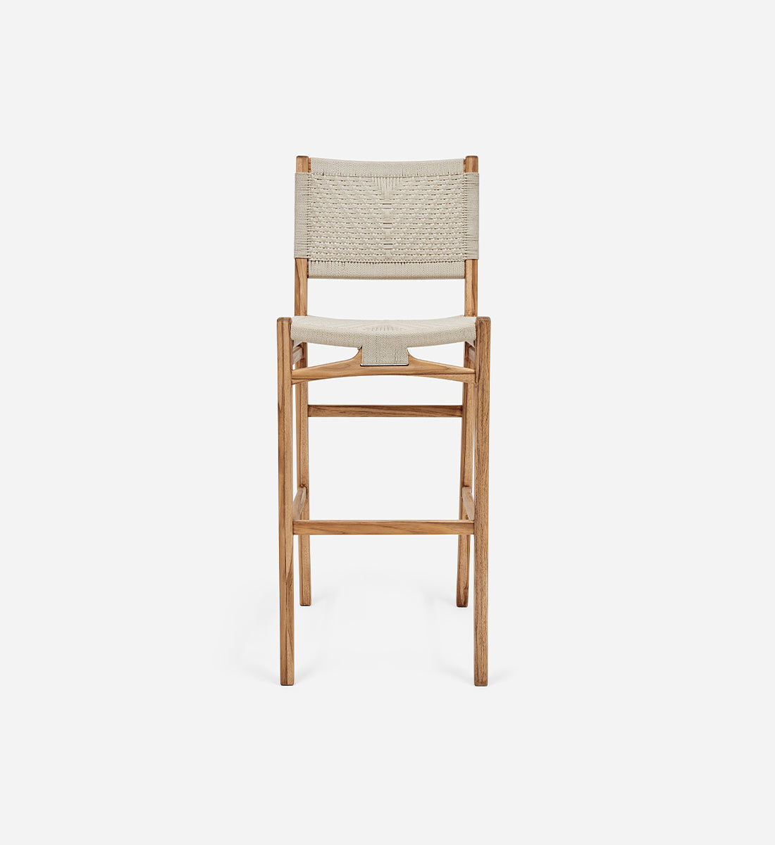 The Calvero Bar Stool, handcrafted from FSC® certified teak wood, features a unique handwoven design. This sustainable furniture piece offers elegance, durability, and eco-friendly charm for bar or counter seating.