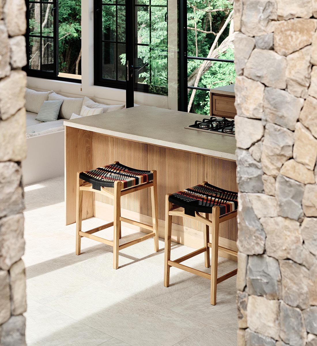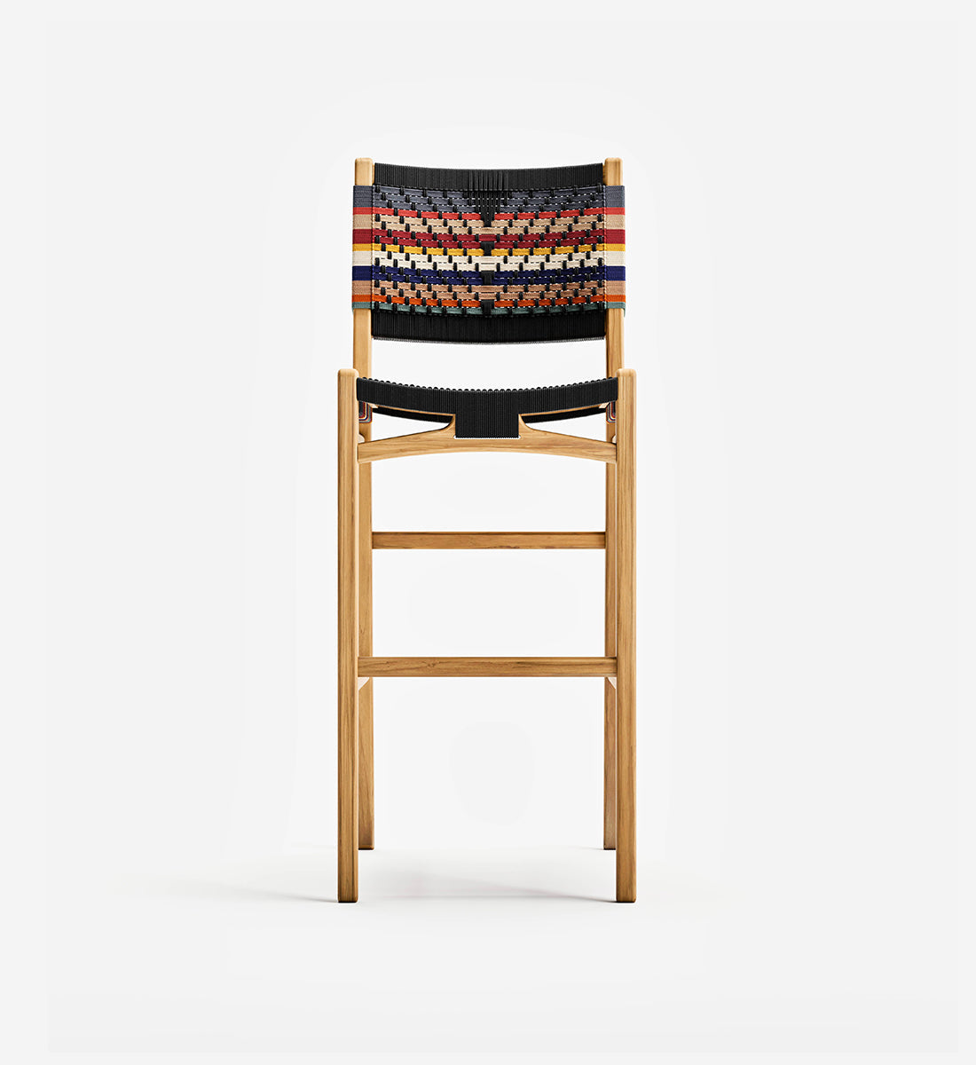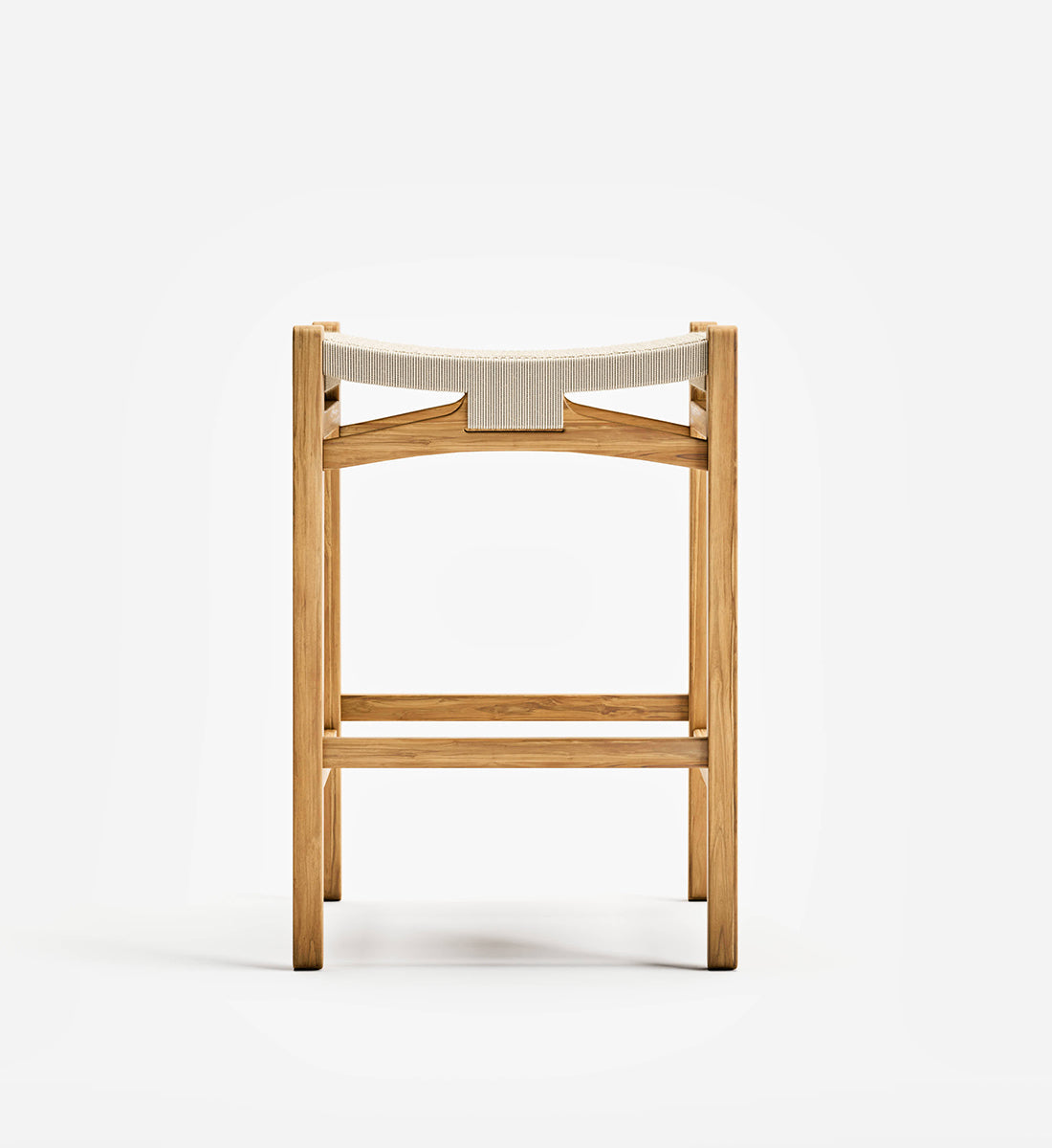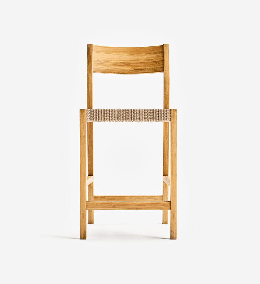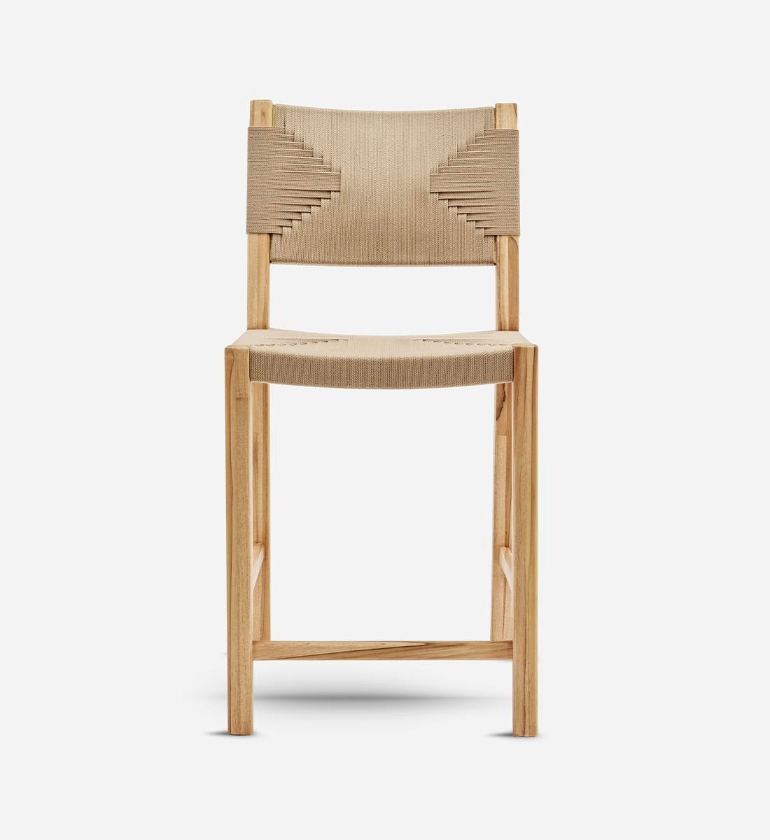 The Calvero Bar Stool, handcrafted from FSC® certified teak wood, features a unique handwoven design. This sustainable furniture piece offers elegance, durability, and eco-friendly charm for bar or counter seating.