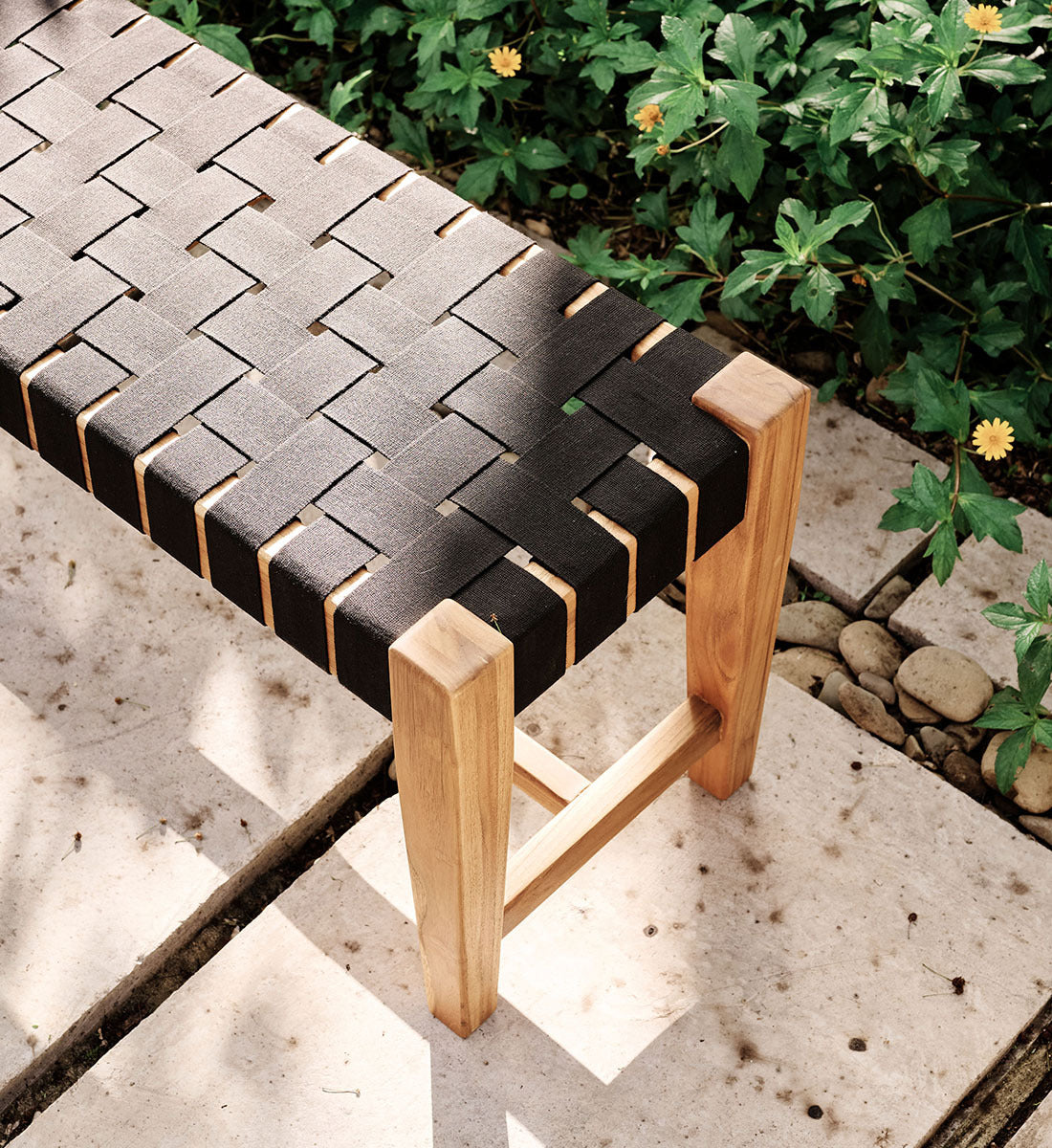 Inspired by Danish Cord Mid-Century designs and traditional Japanese woodworking the solid teak Chontales bar stool brings warm textures and woven rope details to the dining area.