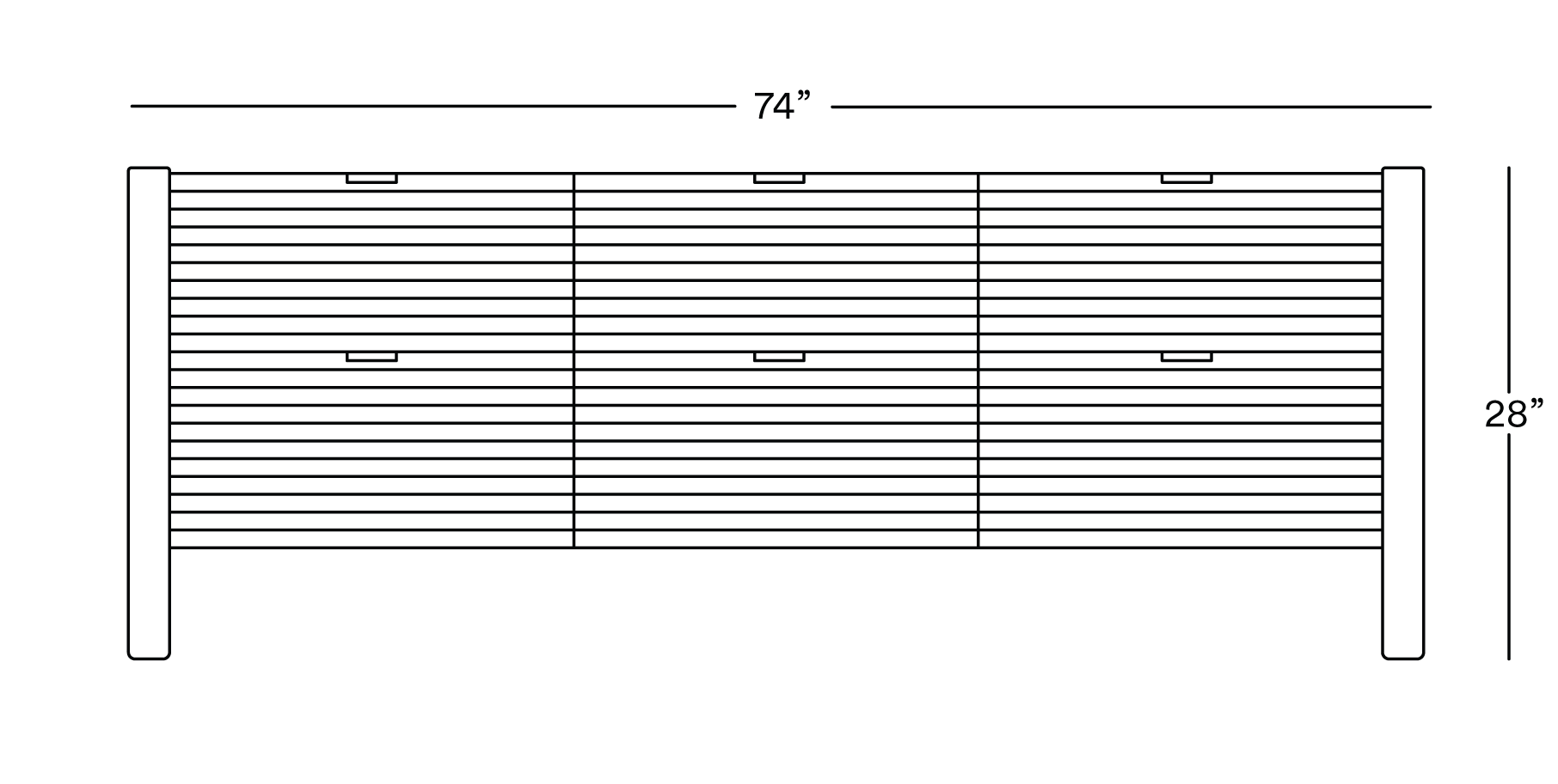 74” Width | 19.5” Depth | 28” Height