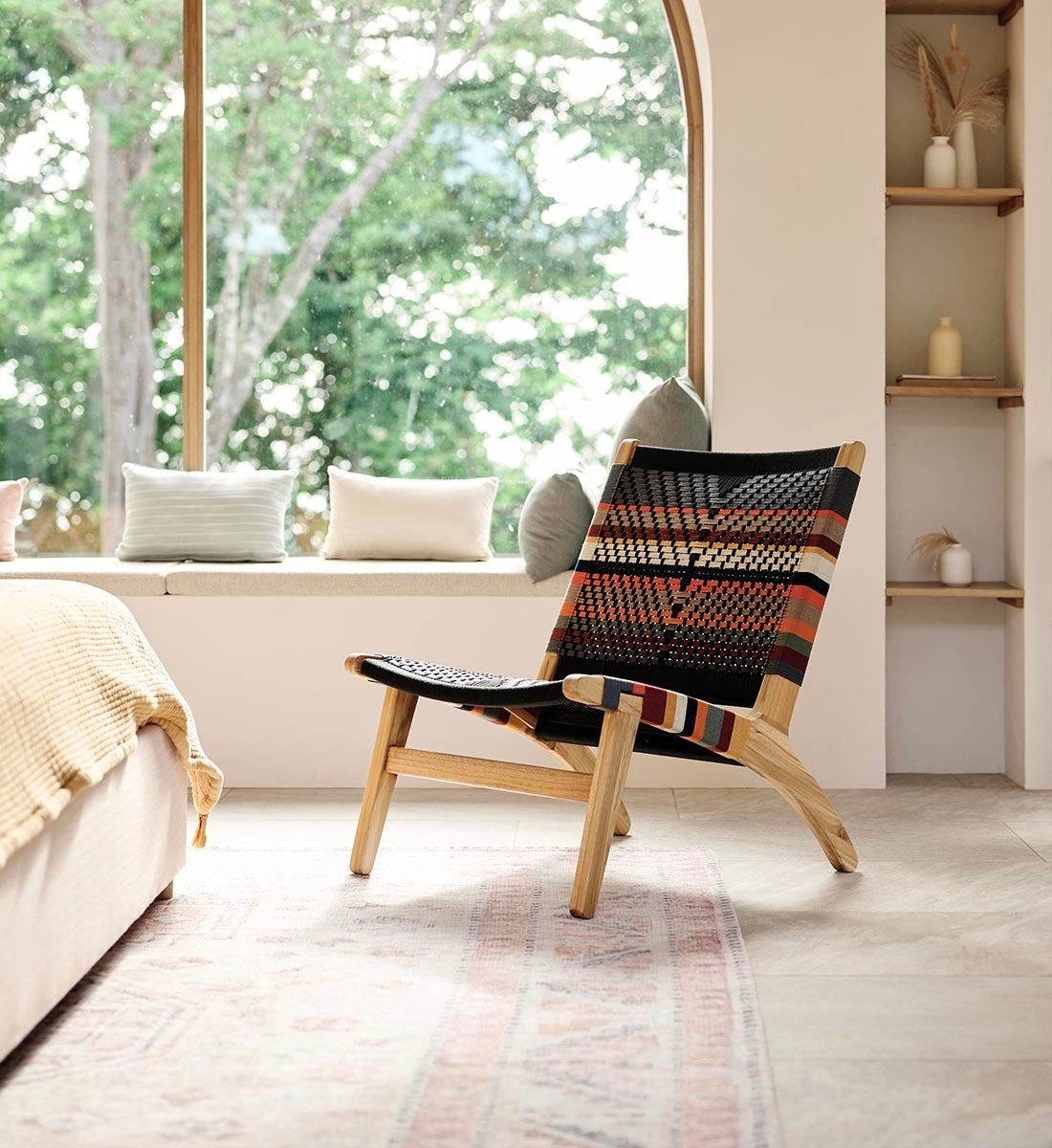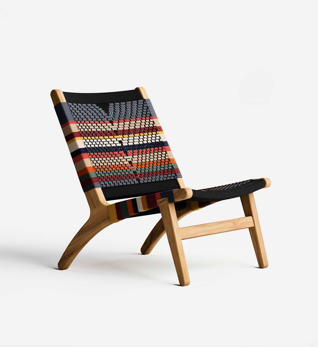 Small but striking, the Casares Lounge Chair is crafted from 100% FSC®-Certified teak wood with a colorful woven cord seat and backrest. An eco-friendly accent for compact spaces.