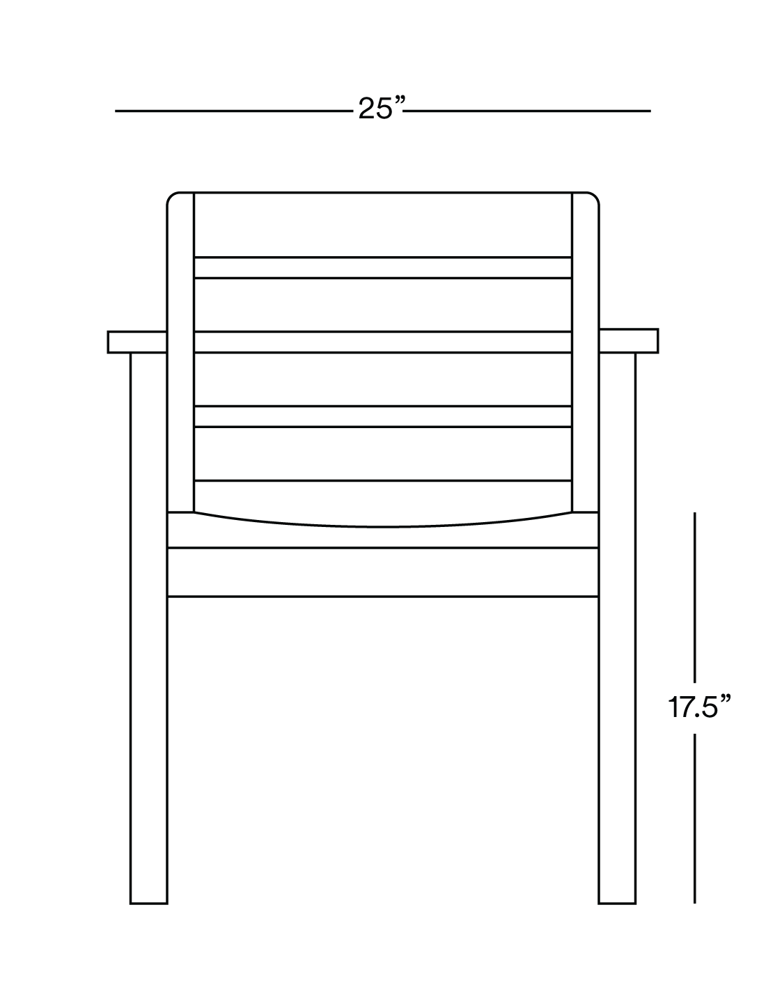 25” Width | 24” Depth | 34” Height | 17.5" Seat Height | 26.5" Arm Height