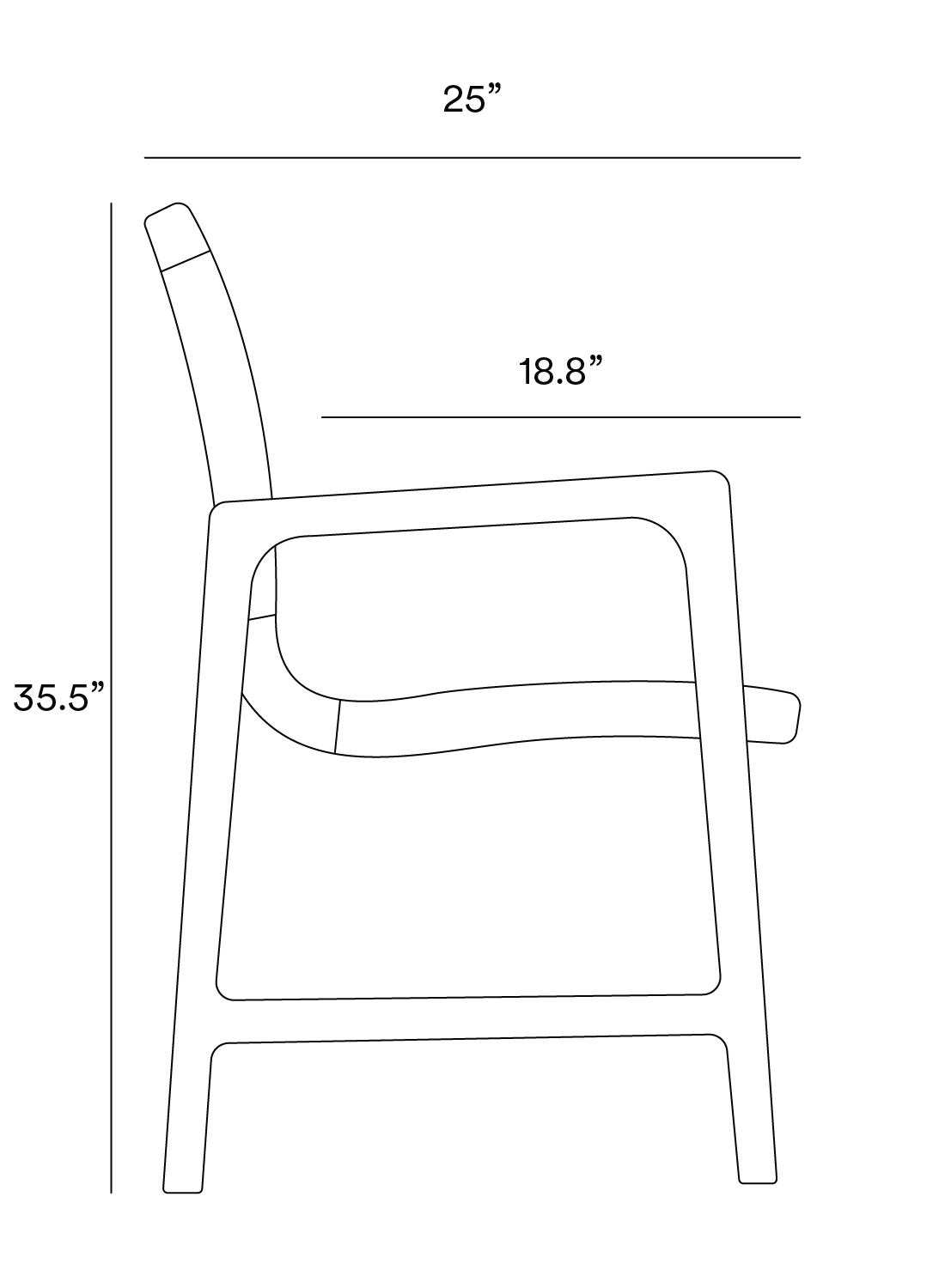 25” Width | 25” Depth | 35.5” Height | 17" Seat Height | 26" Arm Height