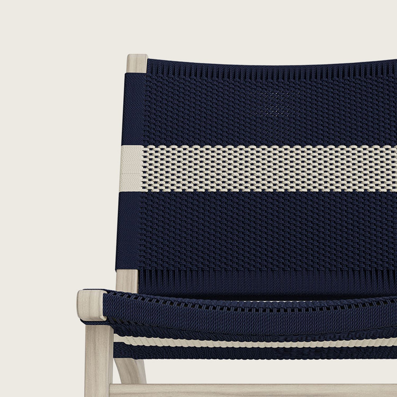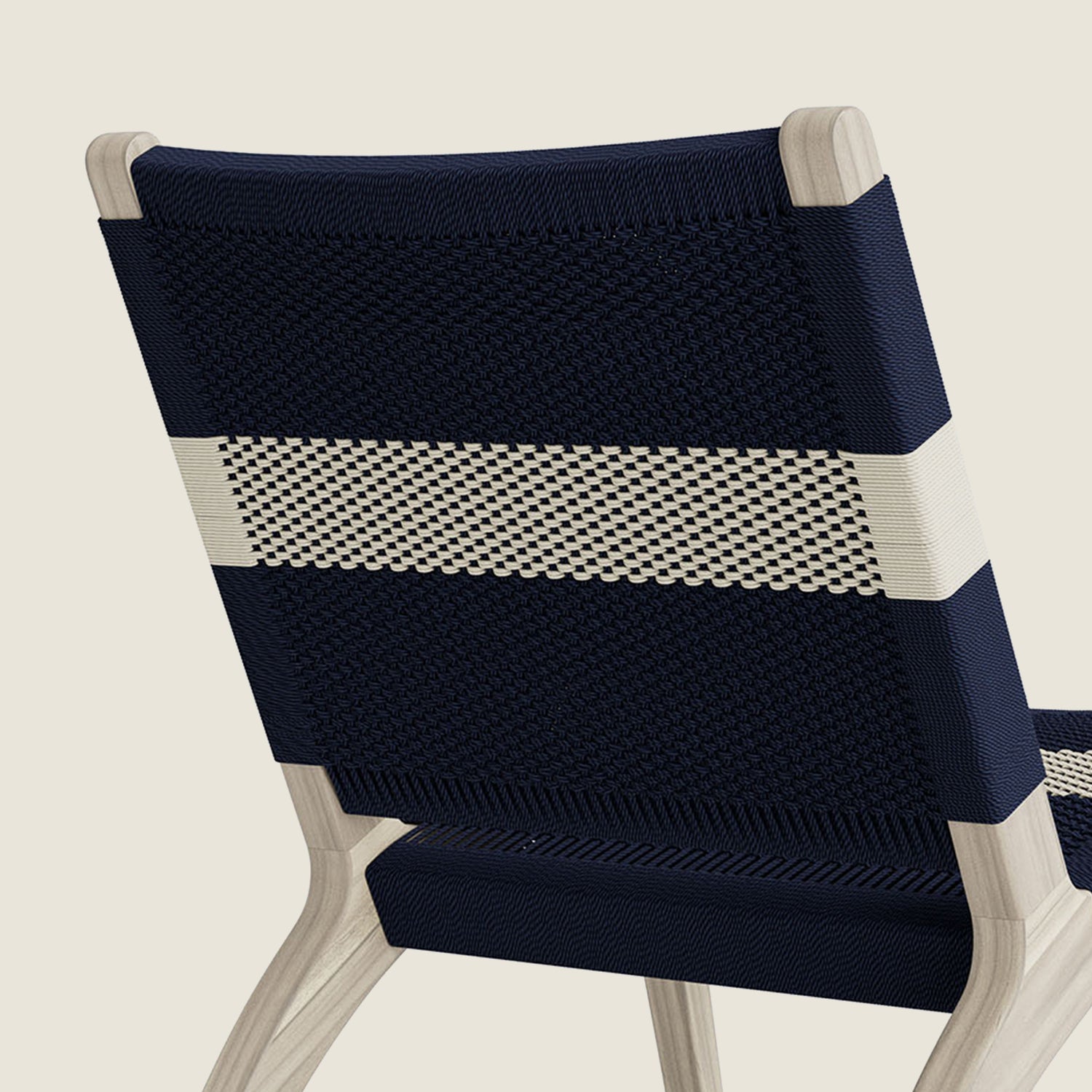 The Masaya Lounge Chair features a woven rope back and seat, inspired by Mid-Century Danish Cord and Japandi designs. Each piece is handmade from solid FSC® Certified teak wood and woven by hand using durable homespun polyester cord.