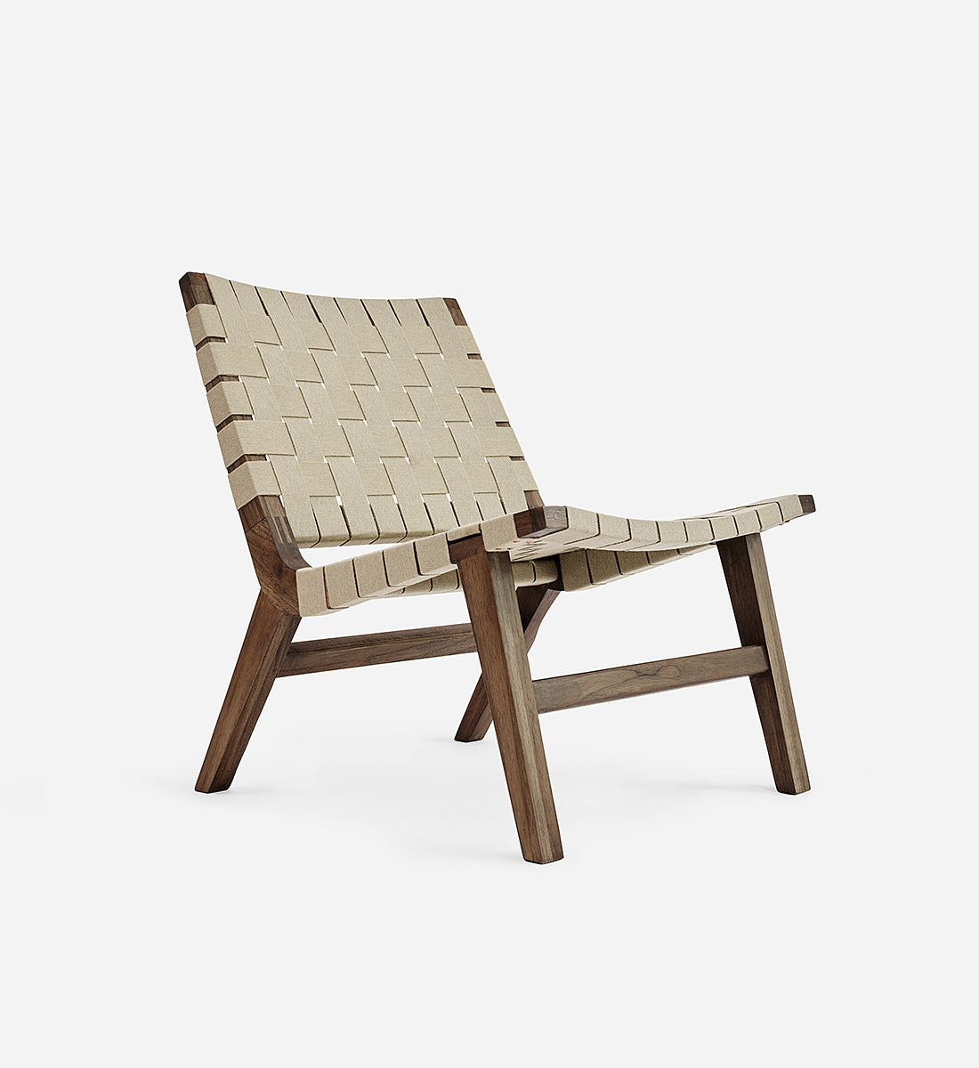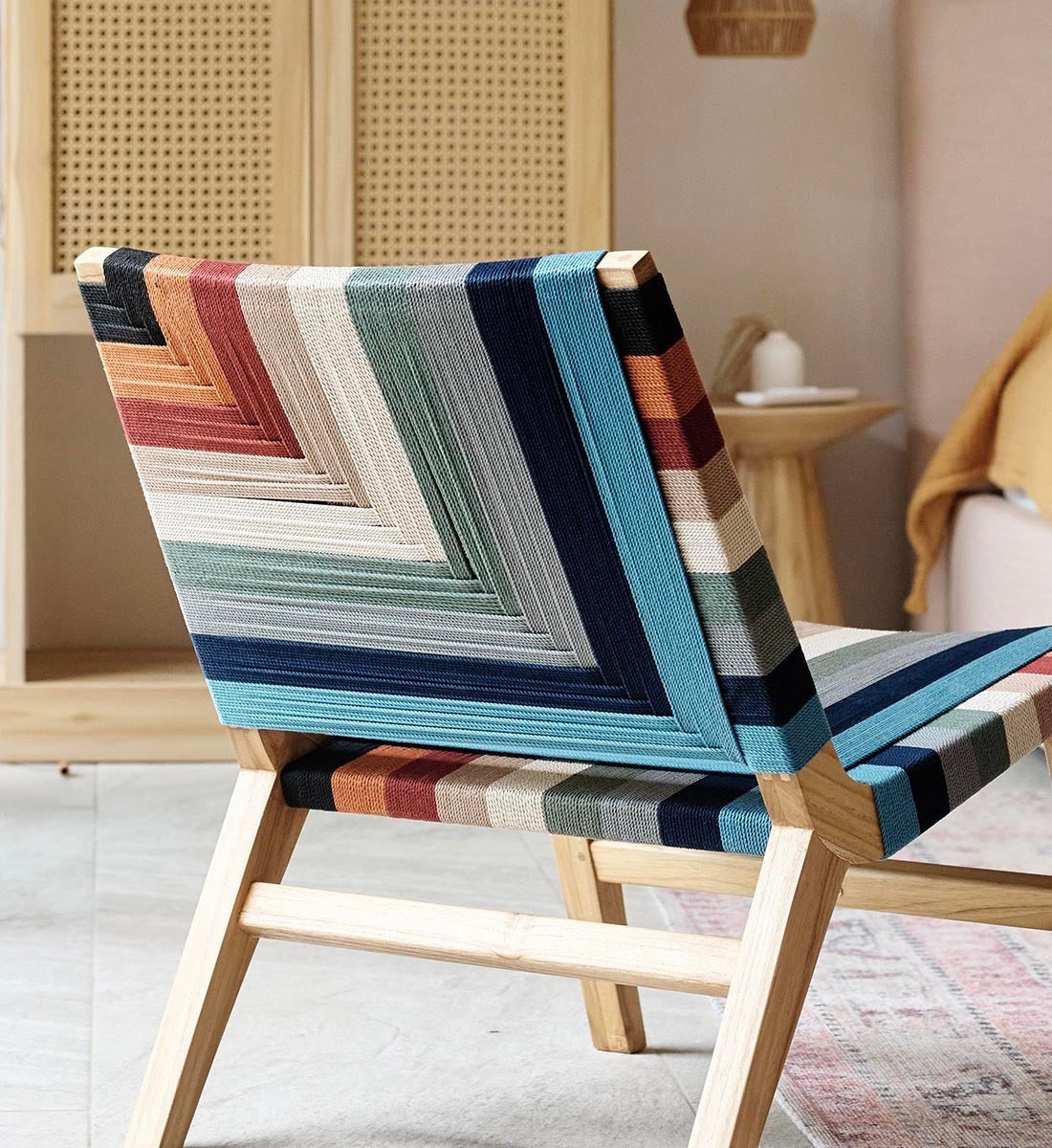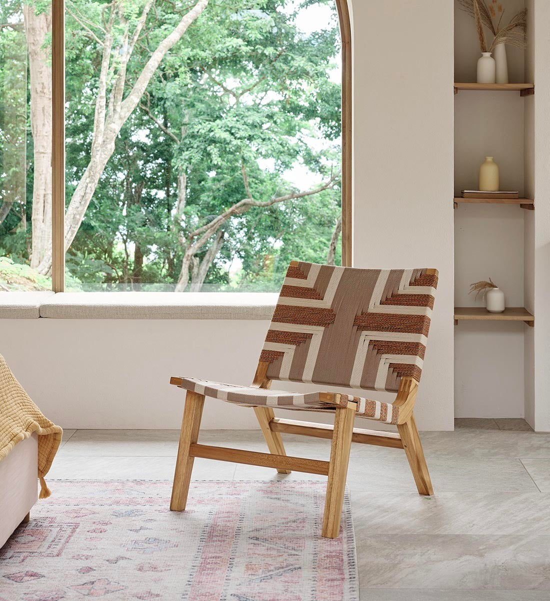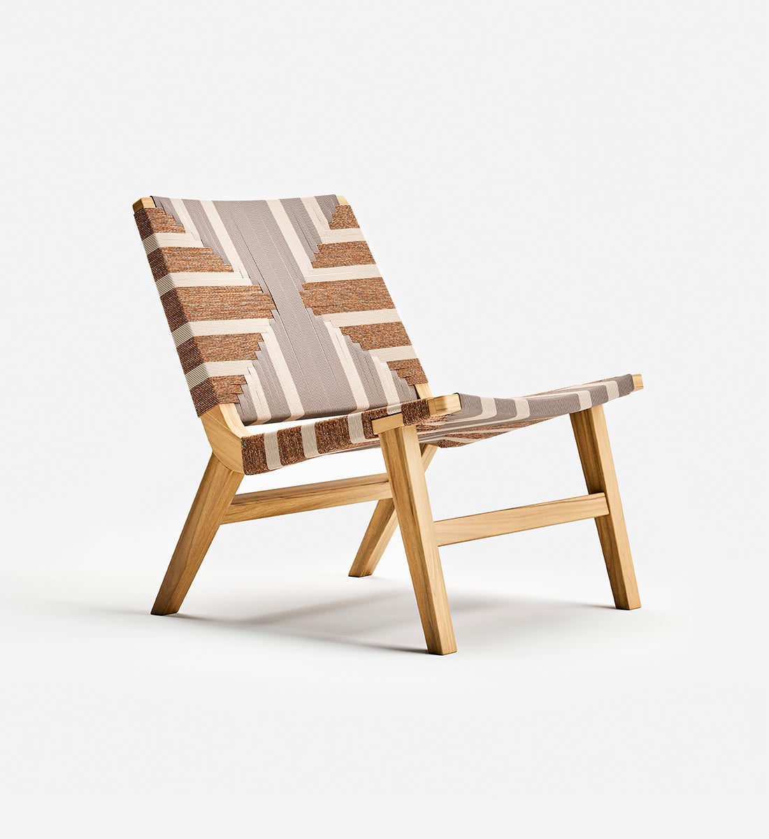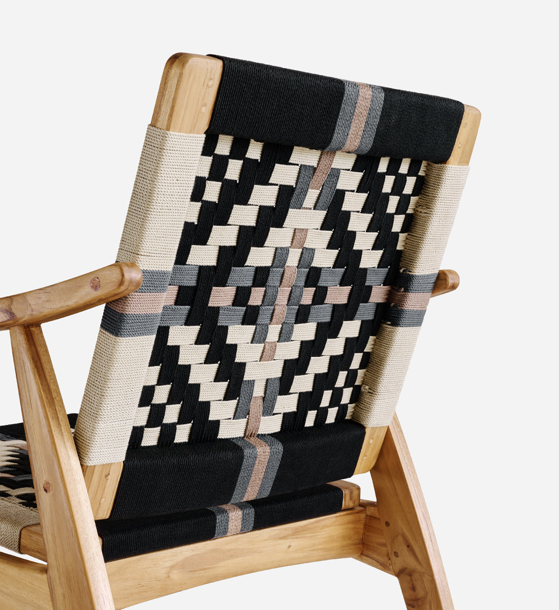 The Masaya Lounge Chair Sienna Pattern features a woven rope back and seat, inspired by Mid-Century Danish Cord and Japandi designs. Pattern by Martēn Design.
