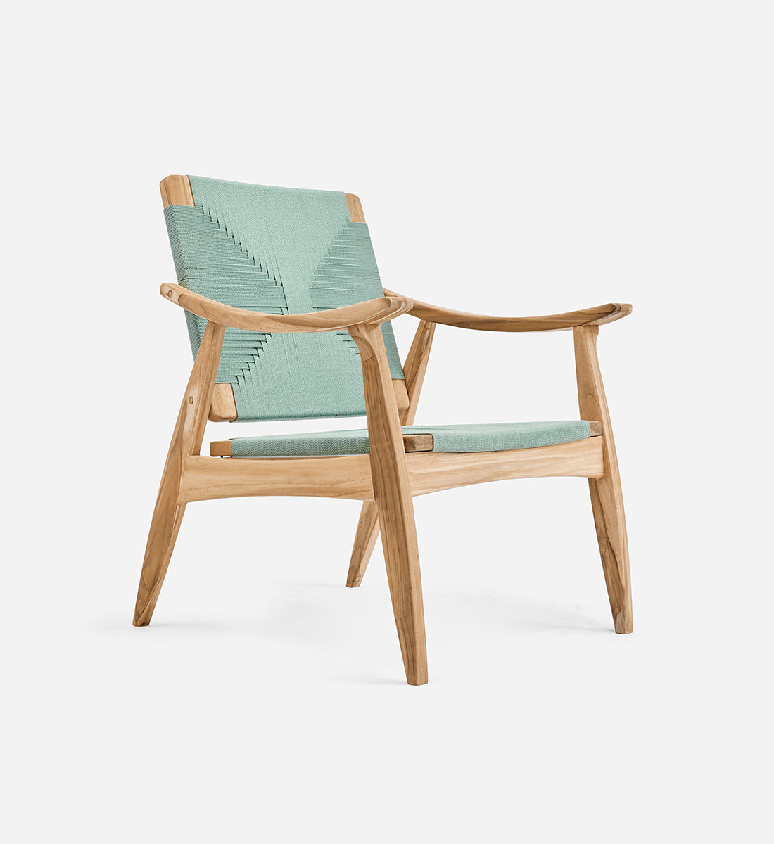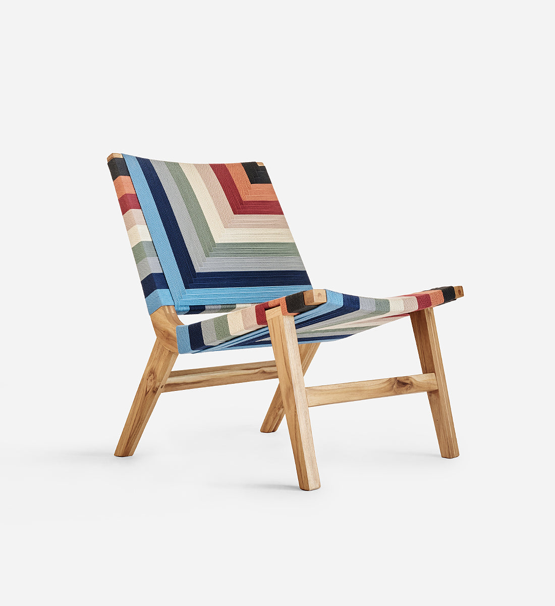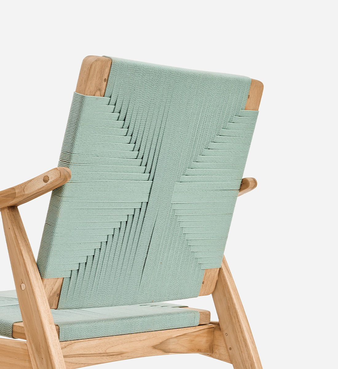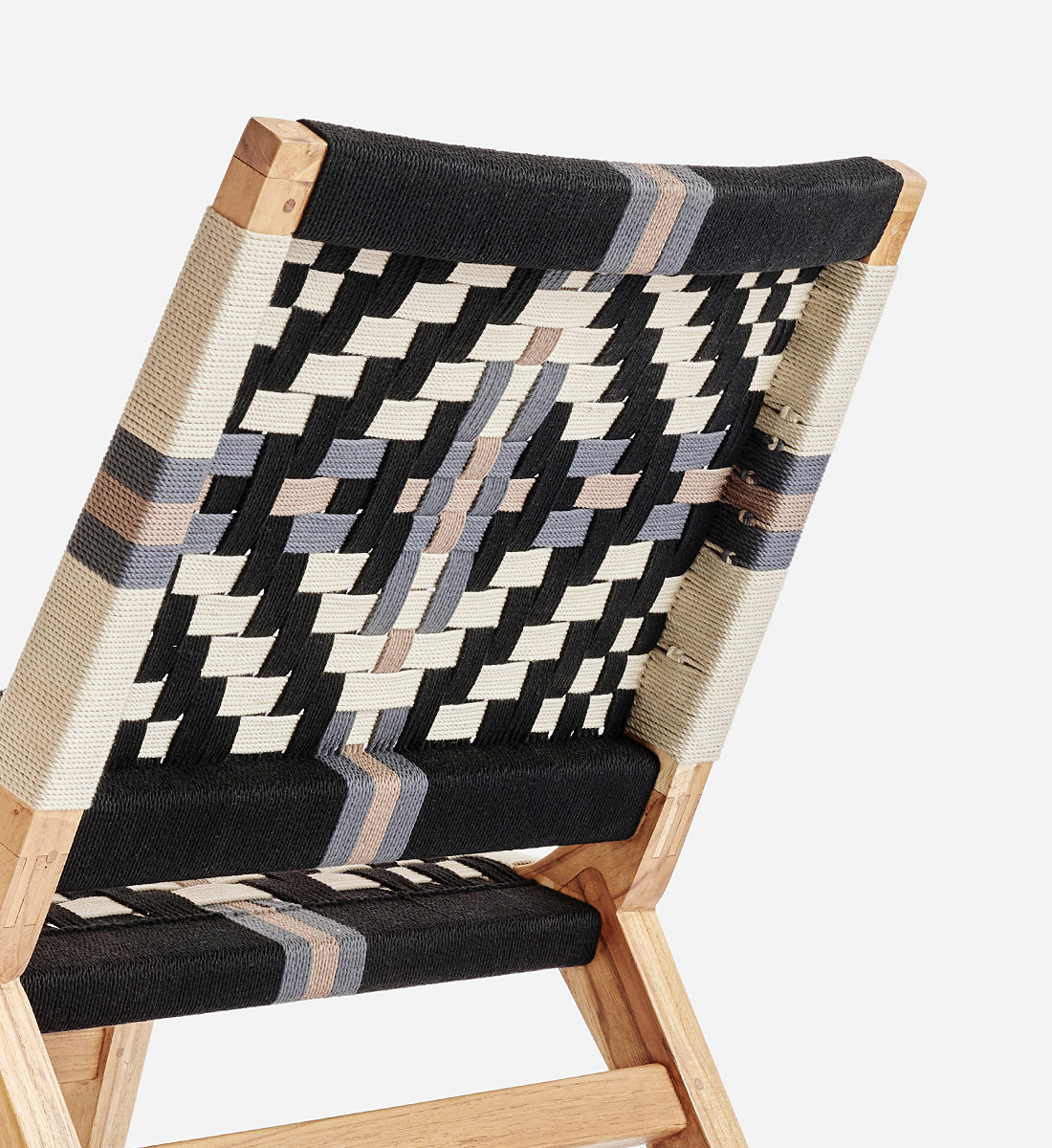 Each piece is handmade from FSC®-Certified teak wood and woven using durable homespun polyester cord.