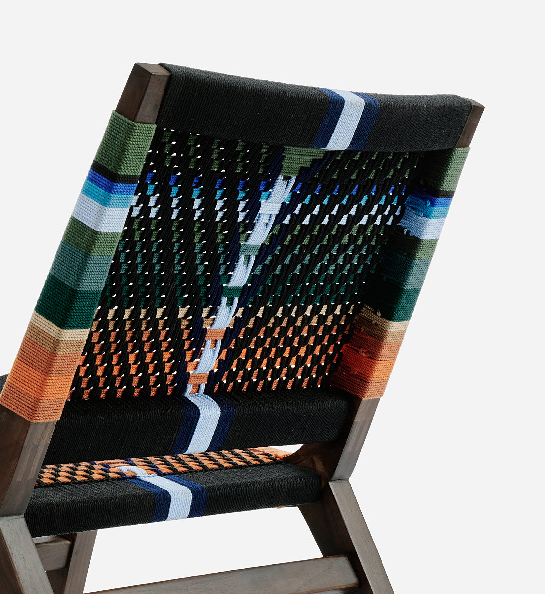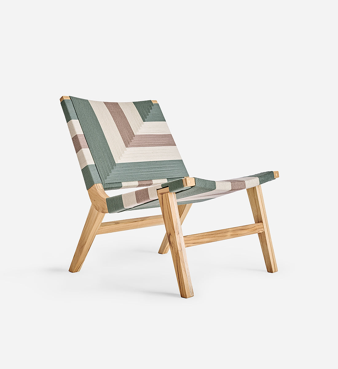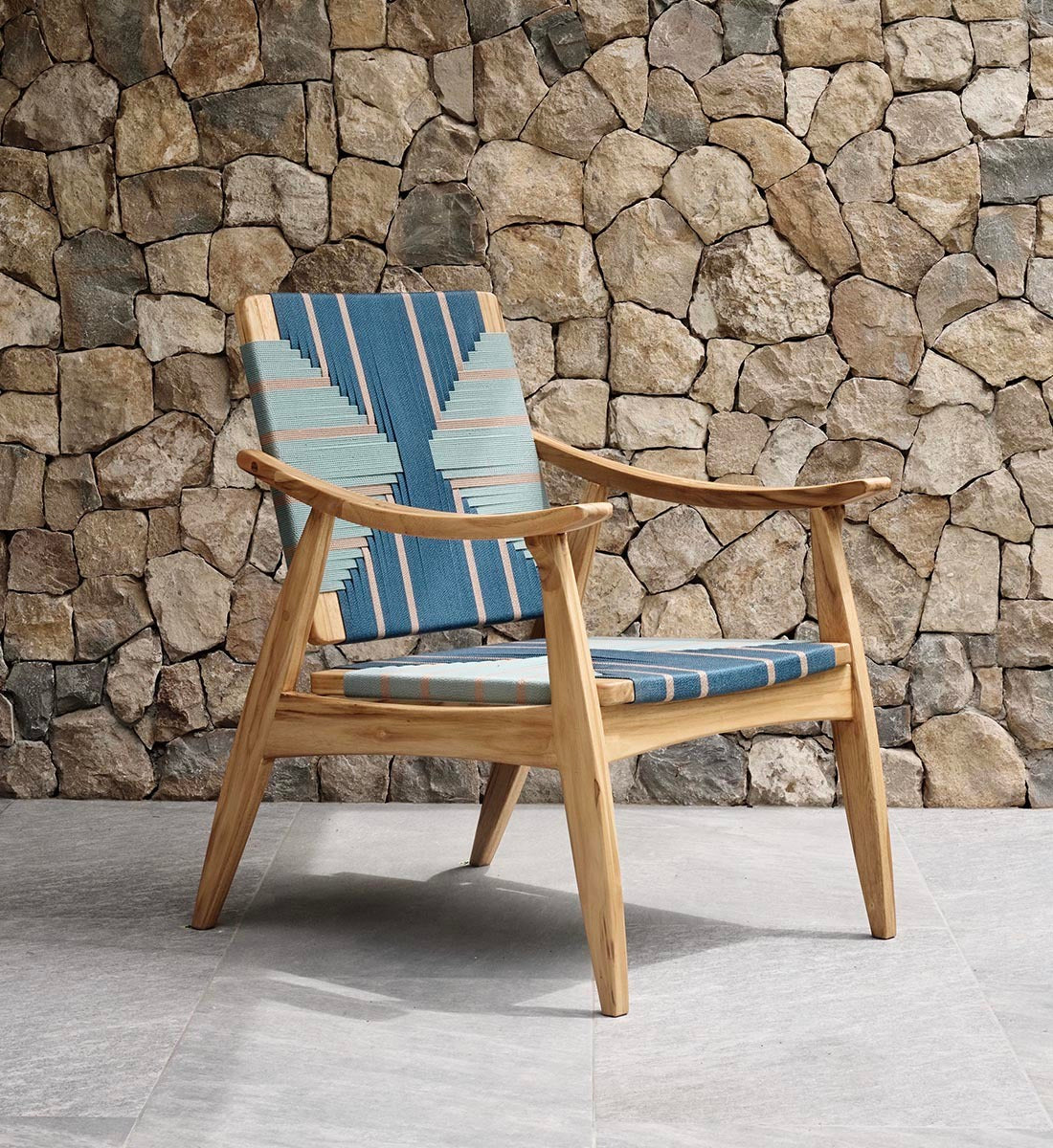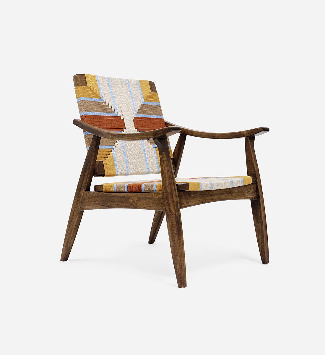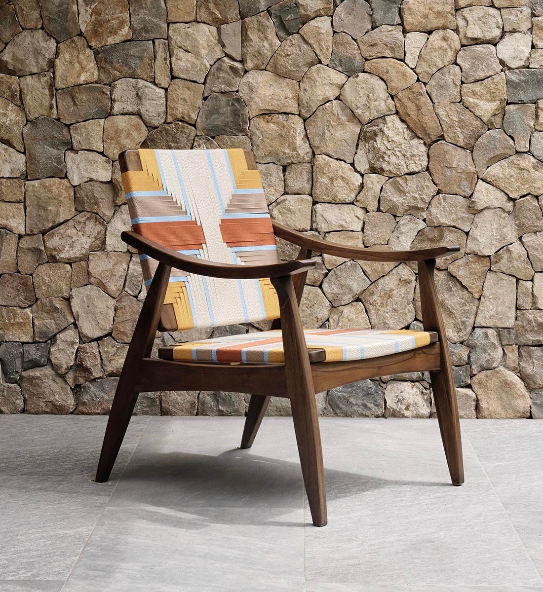 Each piece is handmade from FSC®-Certified teak wood and woven using durable homespun polyester cord.